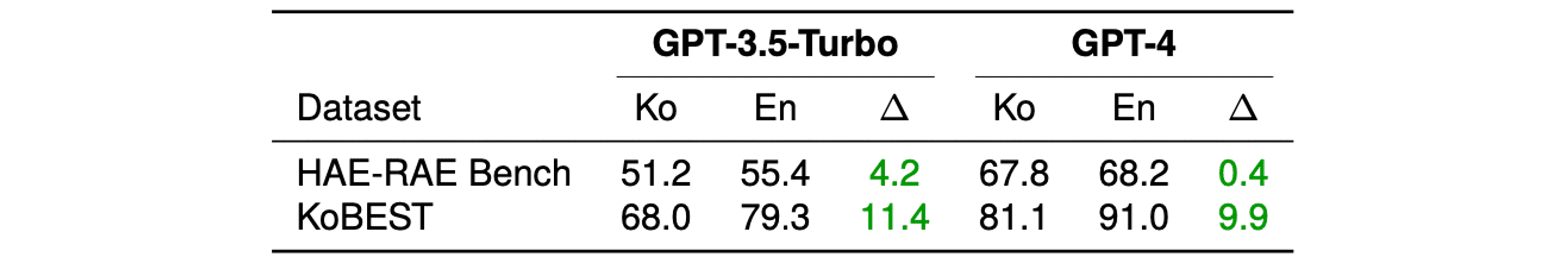 4. GPT-3.5와 GPT-4의 HAE-RAE Bench 성능