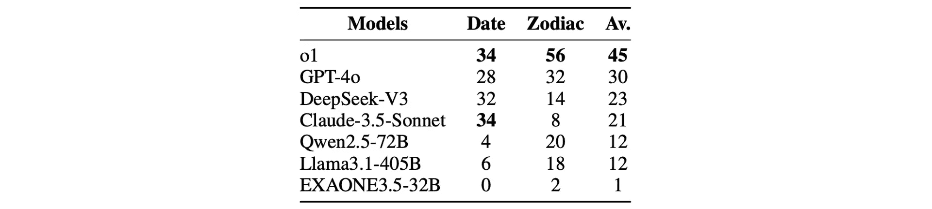 Zodiac: This subset contains longer questions, each spanning 10 to 12 lines. To solve these, the model must recall concepts such as the Korean age and various age expressions used in Korean conversations, understand honorifics, and make logical inferences based on the provided premises. Additionally, it must perform arithmetic to deduce the zodiac sign from the age. The gold response consists of six steps, making this subset more challenging than the Date subset.