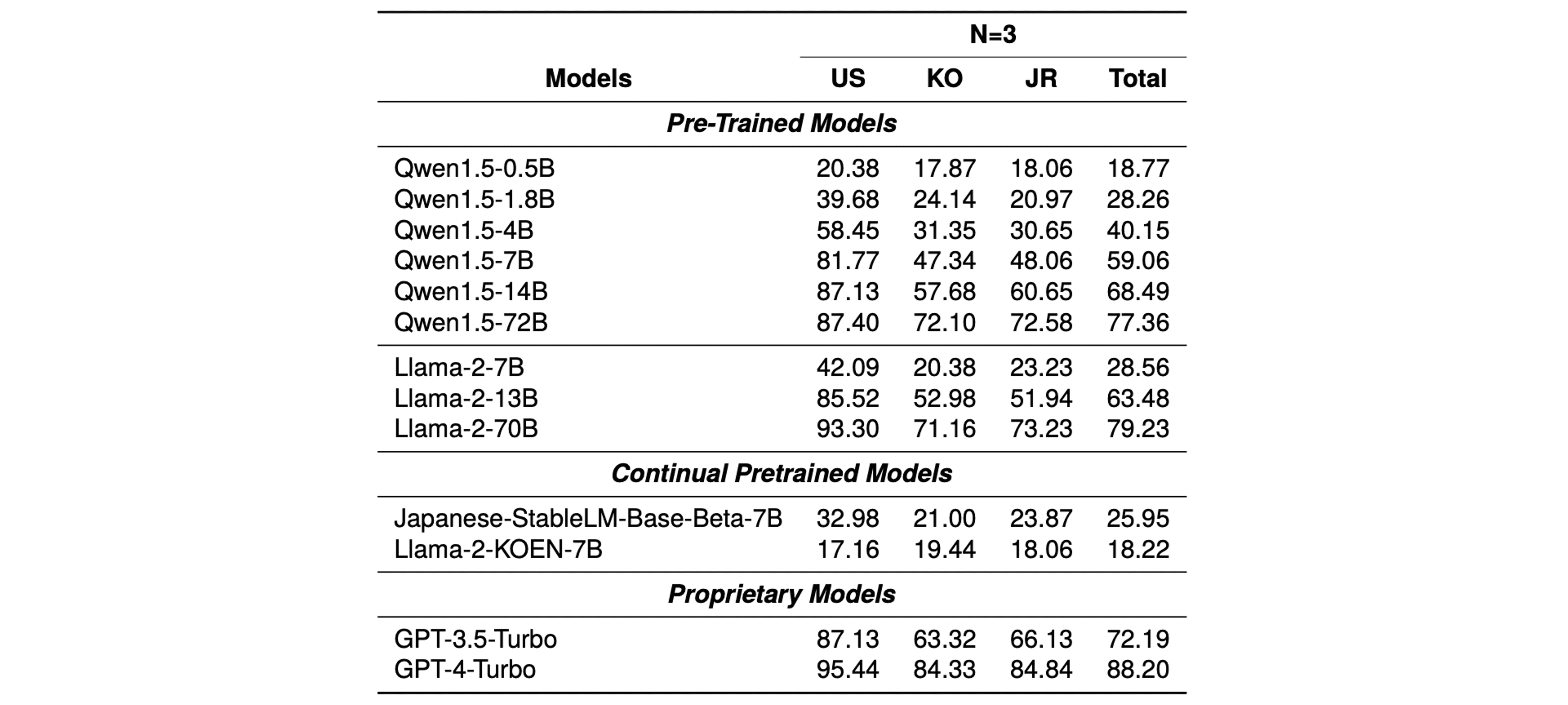 모든 질문이 영어로 제시되었음에도 불구하고, 모델들은 미국 기업에 관한 질문에서 일본이나 한국 기업 관련 질문보다 더 높은 성능을 보임