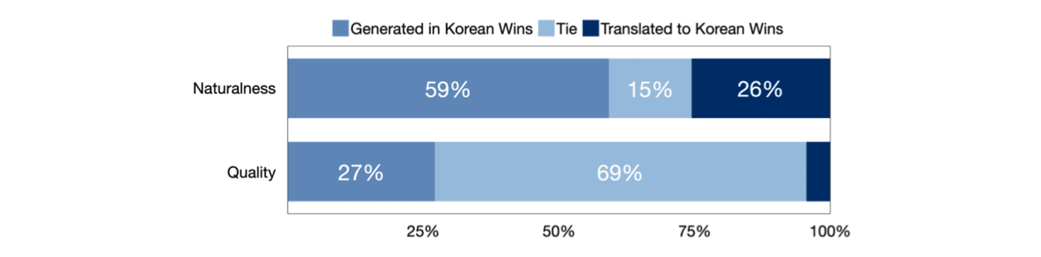 KRX-Bench를 통해 한국어로 250개의 질문을 생성하고, 이를 영어에서 번역한 질문과 비교 평가했습니다.
