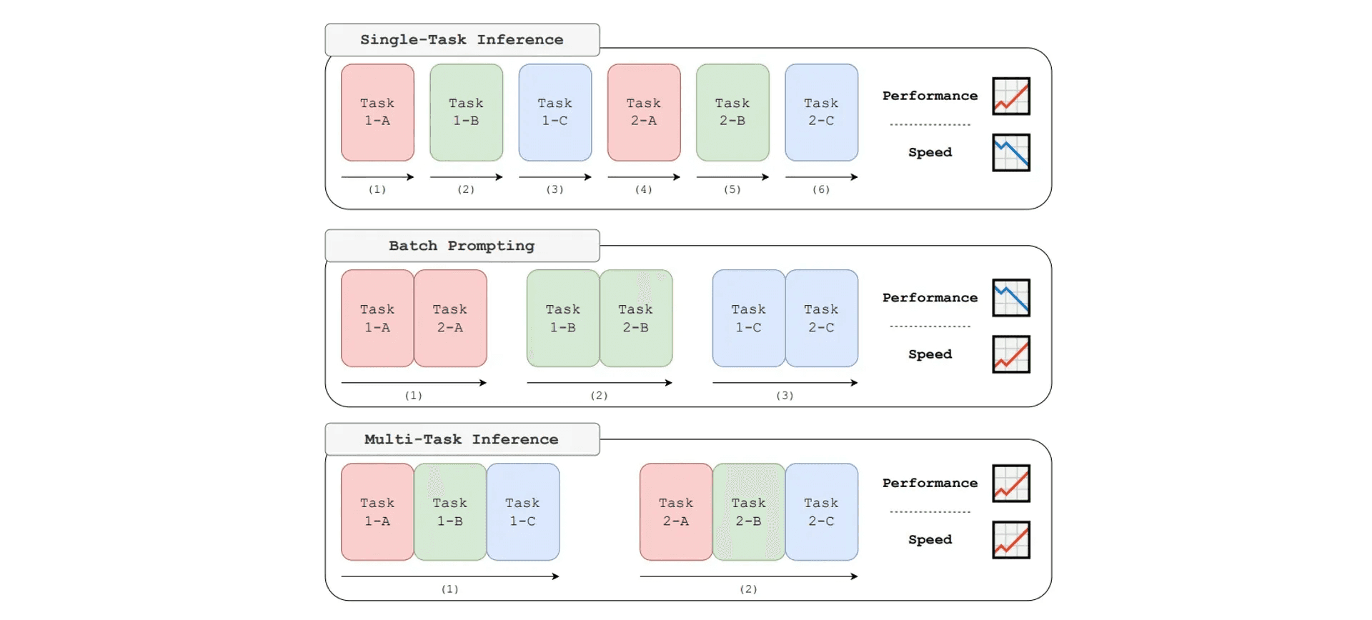 하지만 이러한 모델들은 대개 한 번의 추론 호출에서 단일 명령만을 처리하도록 설계되었습니다. 즉, 각 작업은 독립적으로 수행되며, 여러 작업을 처리하려면 여러 번의 호출이 필요합니다. 이러한 한계는 모델의 활용도를 제한할 뿐만 아니라, 처리 시간이 증가하고 자원 효율성이 떨어지는 결과를 초래할 수 있습니다. 그렇다면, 하나의 추론 호출에서 다중 과제 (Multi-Task)를 동시에 처리할 수 있다면 어떨까요? 이는 LLM의 효율성을 극대화하고, 더 복잡한 작업 환경에서도 활용할 수 있는 가능성을 열어줍니다.