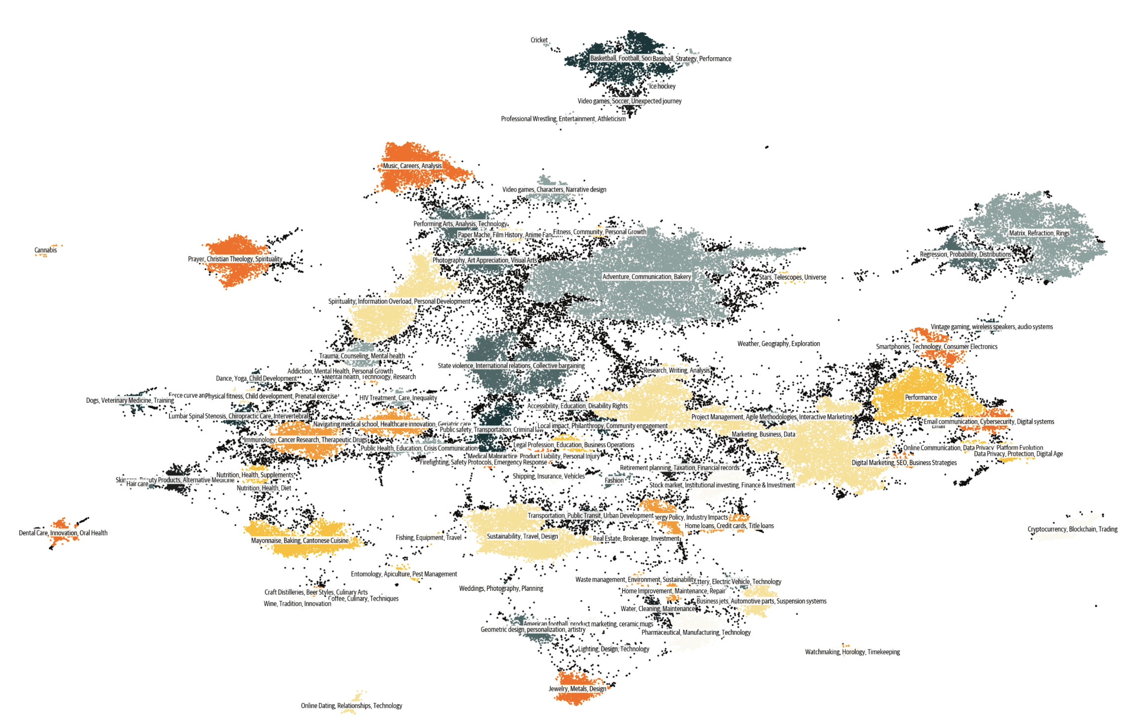 금융 웹 데이터 클러스터링: SEC 파일링, 금융 뉴스, 전문가 블로그 등의 웹 데이터를 클러스터링하여 다양한 금융 주제를 식별하고, 이를 바탕으로 데이터를 생성할 수 있습니다.